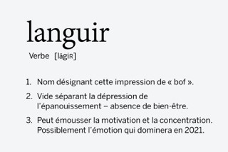 Depuis quelques mois, je pose la question à mes amis et mes collègues, puis je laisse passer une seconde avant d’ajouter « Vraiment? ». J’obtiens souvent une réponse franche, qui va au-delà de l’habituel « Ça va bien! ». Ce n’est pas du tout scientifique comme étude, mais je remarque quand même que les réponses ressemblent plutôt à « bof », ou quelque chose s’en approchant. Quand je suis tombée sur un article publié par le psychologue organisationnel Adam Grant dans le New York Times, j’ai vu qu’il donnait un nom à ce sentiment; selon lui, après les événements éprouvants des dix-huit derniers mois, bien des gens languissent, un état qu’il décrit comme « l’impression d’avancer amorphe dans le quotidien, de voir sa vie à travers une fenêtre embuée ». « C’est peut-être l’émotion qui domine en 2021 », ajoute-t-il. Ce n’est pas vraiment de la dépression, mais ce n’est pas non plus un épanouissement; c’est quelque part entre les deux, une baisse de motivation et de concentration. Dans son article, Grant conclut que l’antidote pourrait se trouver dans un concept défini par Mihály Csíkszentmihályi en 1975, le « flux ». Le mot désigne la zone mentale dans laquelle on se trouve lorsqu’on est entièrement plongé dans une activité et qu’on se trouve dans un état maximal de concentration, de plein engagement et de satisfaction. Rien de plus éloigné du « bof »!