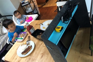 Une chose m’a sauté aux yeux : parfois, plusieurs travailleurs devaient soudainement se partager un même petit espace à la maison. Je me suis intéressé à la division entre le travail et la vie personnelle, et au passage d’une réalité à l’autre au cours d’une journée. Dans les petits espaces, j’ai remarqué que les gens sans bureau à eux ont dû improviser un poste de travail sur la table à manger ou sur l’îlot de cuisine. J’ai vu que certains travailleurs avaient besoin d’un moyen informel de délimiter leur espace de travail sur ces surfaces. C’est de là que m’est venue l’idée de la petite enceinte de concentration.